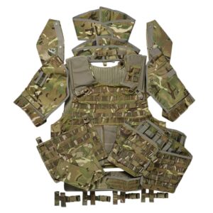 ベストにプレートが入った防弾の為の装備でマガジンポーチやホルスターなどを取り付ける事が出来、マガジンや無線機などを持ち運べる装備です。