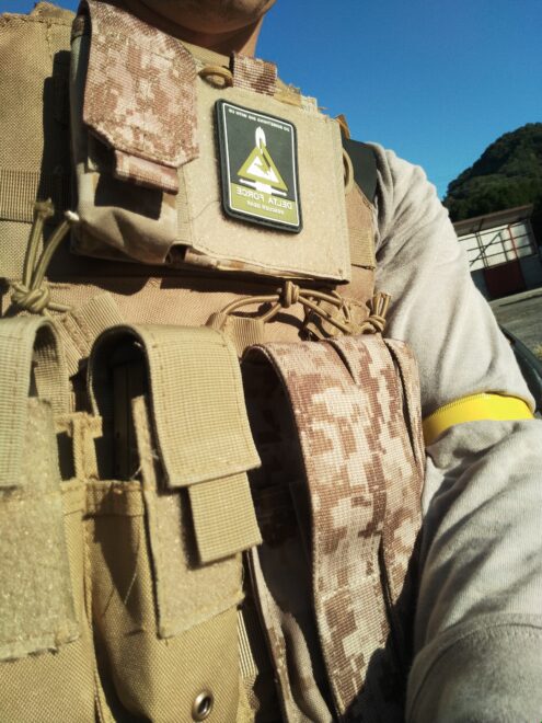 プレキャリの良い所はガチガチの迷彩服にも合うし始めたばかりの方の私服にもプレキャリ1つで雰囲気が出る所です。