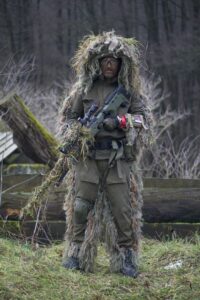 草木に同化し遠距離から敵を狙うスナイパーが主に着用する服装です。