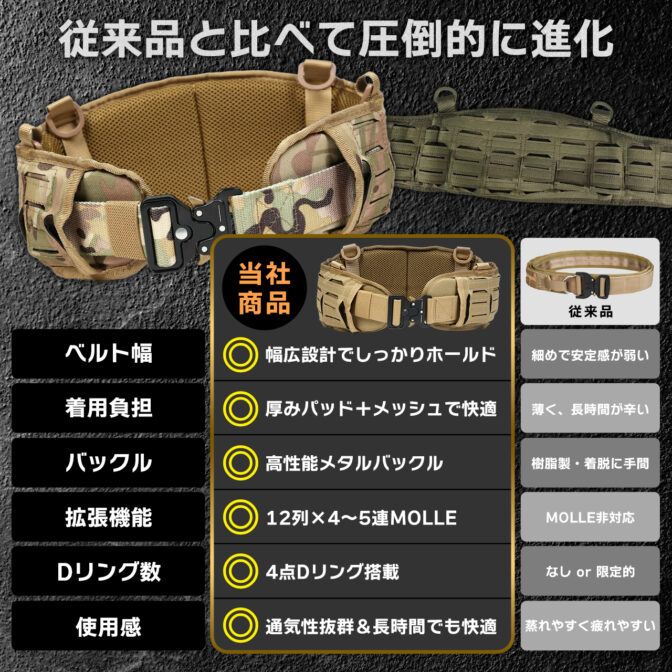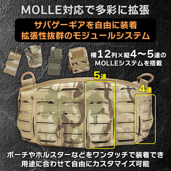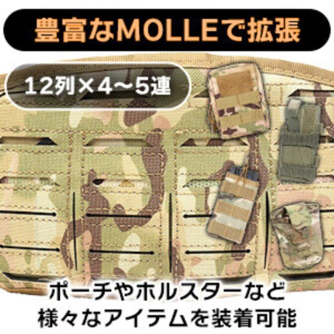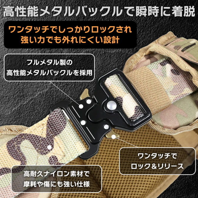 「サバゲー装備!MOLLE対応&高強度メタルバックルで快適&強固にフィット」