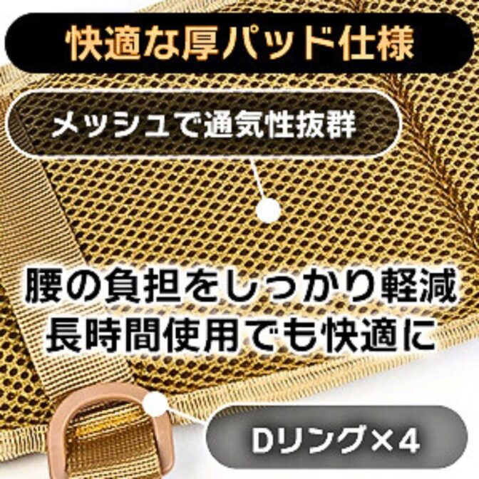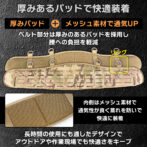腰回りに厚みのあるパッドを搭載し、長時間の使用でも快適に装着可能。サバゲーやアウトドアなどで激しい動きをしても腰への負担を軽減します。蒸れにくく快適な設計のため、夏場や長時間のゲームでも安心して使用可能。クッション性のあるパッド構造は装備の重量を分散させ、快適性と実用性を兼ね備えています。