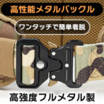 高強度のメタルバックルを採用し、素早い着脱と高い安全性を実現。サバイバルゲームやタクティカルトレーニングでも確実な固定力を発揮します。グローブを着用していても簡単に操作でき、緊急時にも素早く対応可能。サバゲー装備の中でも特に重要な耐久性と機能性を両立したバックルは、ミリタリーベルトを探している方に最適です。