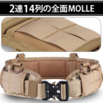 | ・2連14列MOLLEベルト 均等にMOLLEが配置されておりダンプポーチ、ホルスター、マガジンポーチなどのサバゲー装備を取り付け可能。あらゆるカスタマイズが可能です! |
