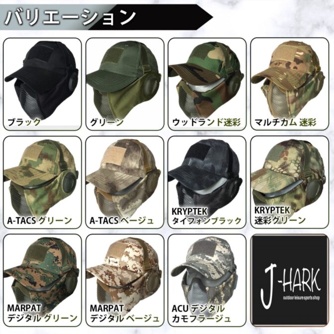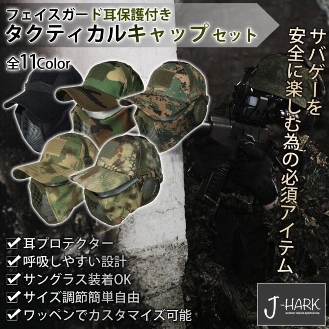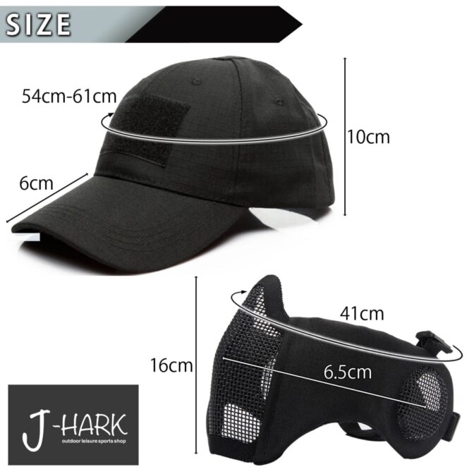 J-HARK サバゲー マスク フェイスガード タクティカル キャップ セット 耳保護付き 曇らない メッシュ フェイスマスク サバイバルゲーム 装備