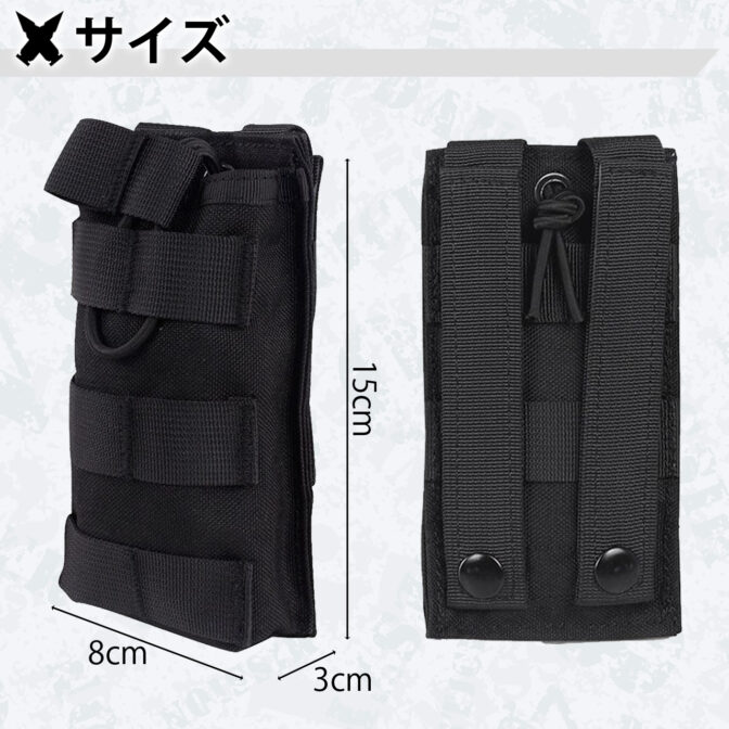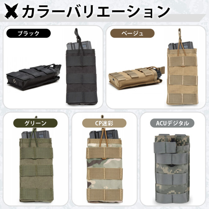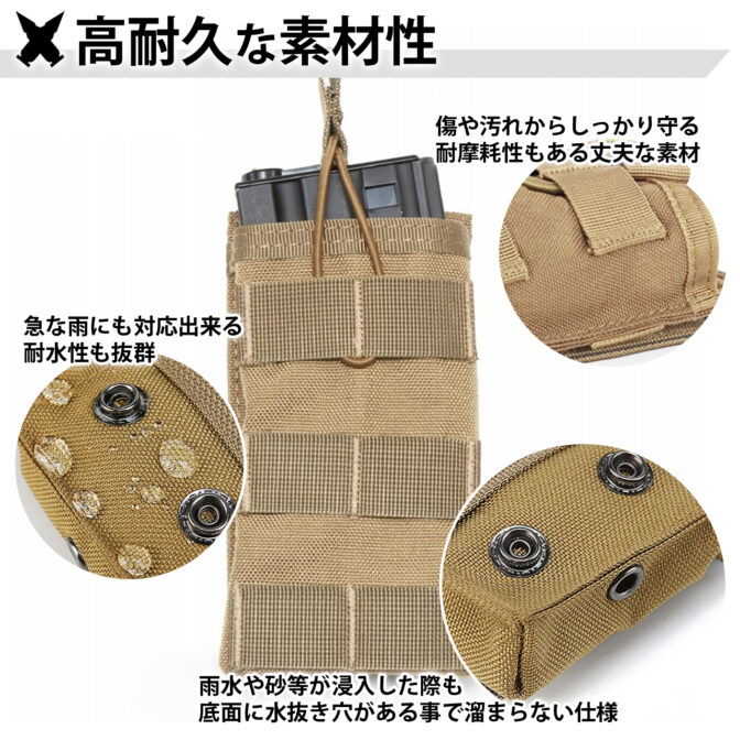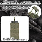 単連式のマガジンポーチでAK、AR、M4、M16などのマガジンに対応しております。