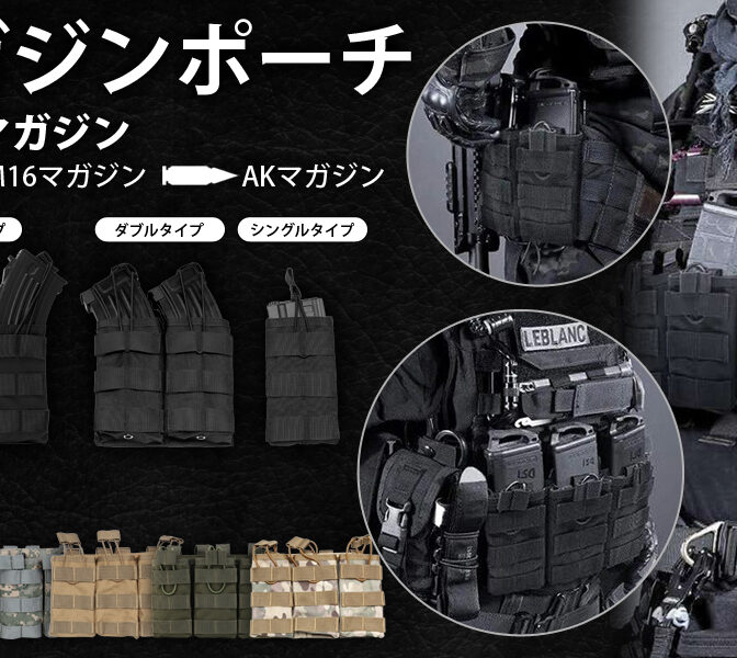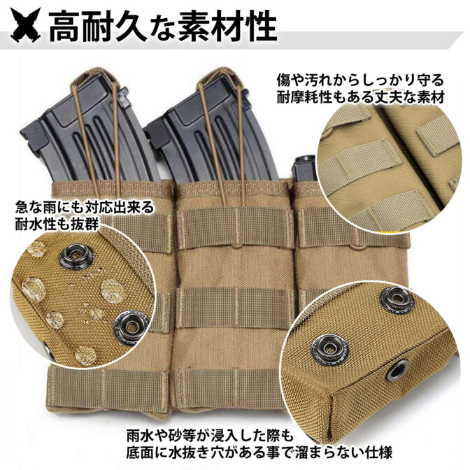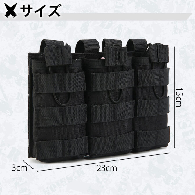 3連式のマガジンポーチでAK、AR、M4、M16などのマガジンに対応しております。