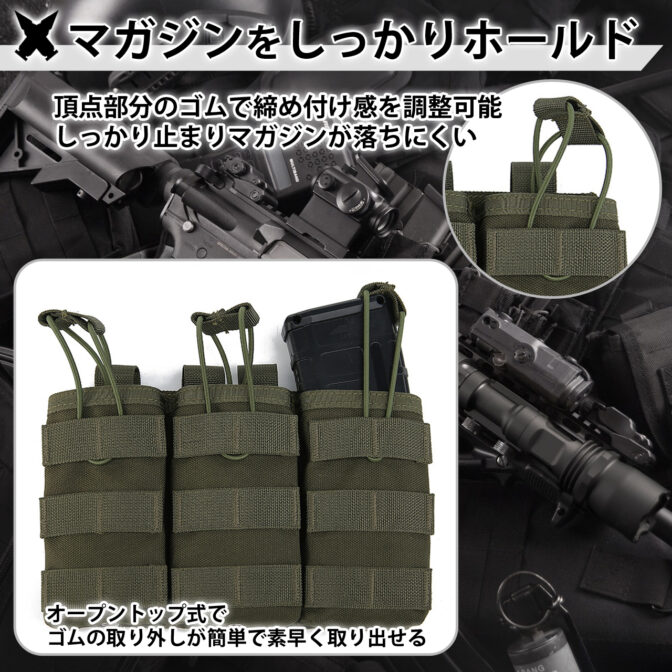 サバゲー マガジンポーチ M4/M16 AK AR モール対応 トリプル オープントップ 弾倉ポーチ サバイバルゲーム装備